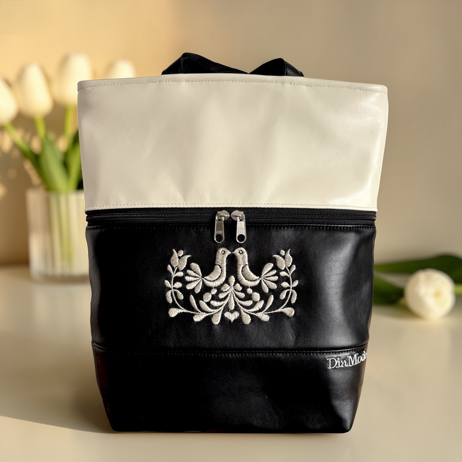 Fekete bőr/fekete bőr/törtfehér bőr (magyaros madarak hímzés)